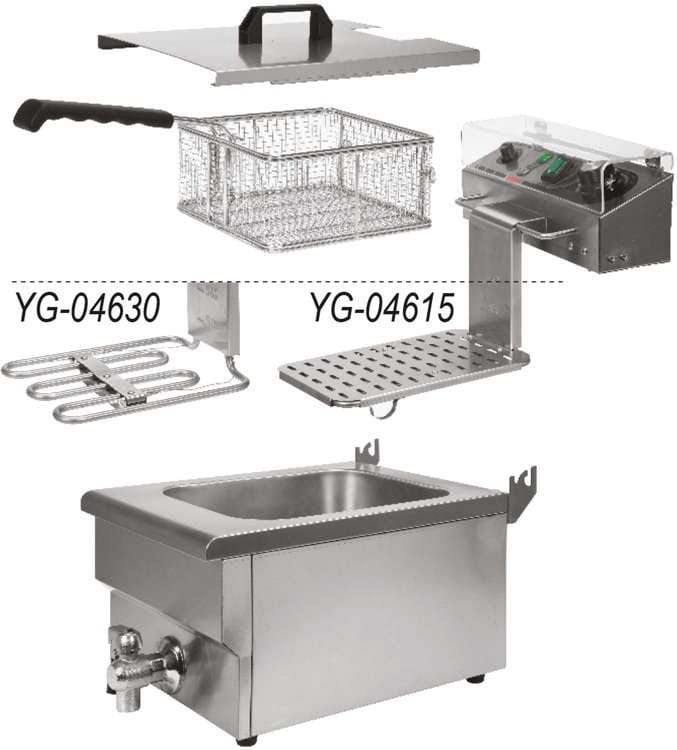 Grzałka o mocy 5,0kW sterowana jest za pomocą potencjometru umieszczonego na panelu sterującym. Możliwe jest ustawienie temperatury pracy w zakresie 60~200℃. Zainstalowane bryzgoszczelny wyłącznik pozwala na wyłączenie urządzenia, bez konieczności odłączania kabla zasilającego z sieci. Dodatkowo panel sterujący posiada osłonę zabezpieczającą wykonaną z bardzo wytrzymałego poliwęglanu, któ,ra chroni panel przed zachlapaniem olejem podczas smażenia. Dzięki temu utrzymanie frytownicy w czystości jest znacznie ułatwione. Wyjmowana grzałka ma możliwość powieszenia jej na specjalnym uchwycie w pozycji, w któ,rej ściekający olej trafia z powrtotem do zbiornika. Frytownica posiada dodatkowe zbezpieczenie, któ,re automatycznie wyłącza grzałkę w momencie wyciągnięcia jej ze zbiornika. Dodatkowe zabezpieczenie chroni ją przed przegrzaniem, przy temperaturze powyżej 260℃.