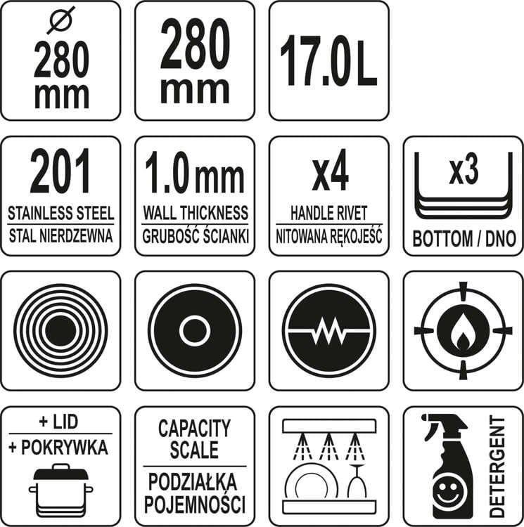 Wkładka ferromagnetyczna w dnie pozwala na stosowanie garnkó,w YATO na każdym rodzaju kuchenek, takich jak: