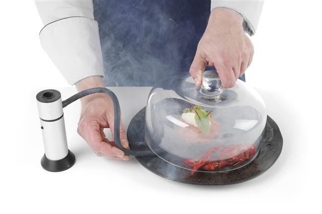- Idealna do użycia w połączeniu z pistoletem wędzarniczym, umożliwia serwowanie potraw w spektakularny sposób