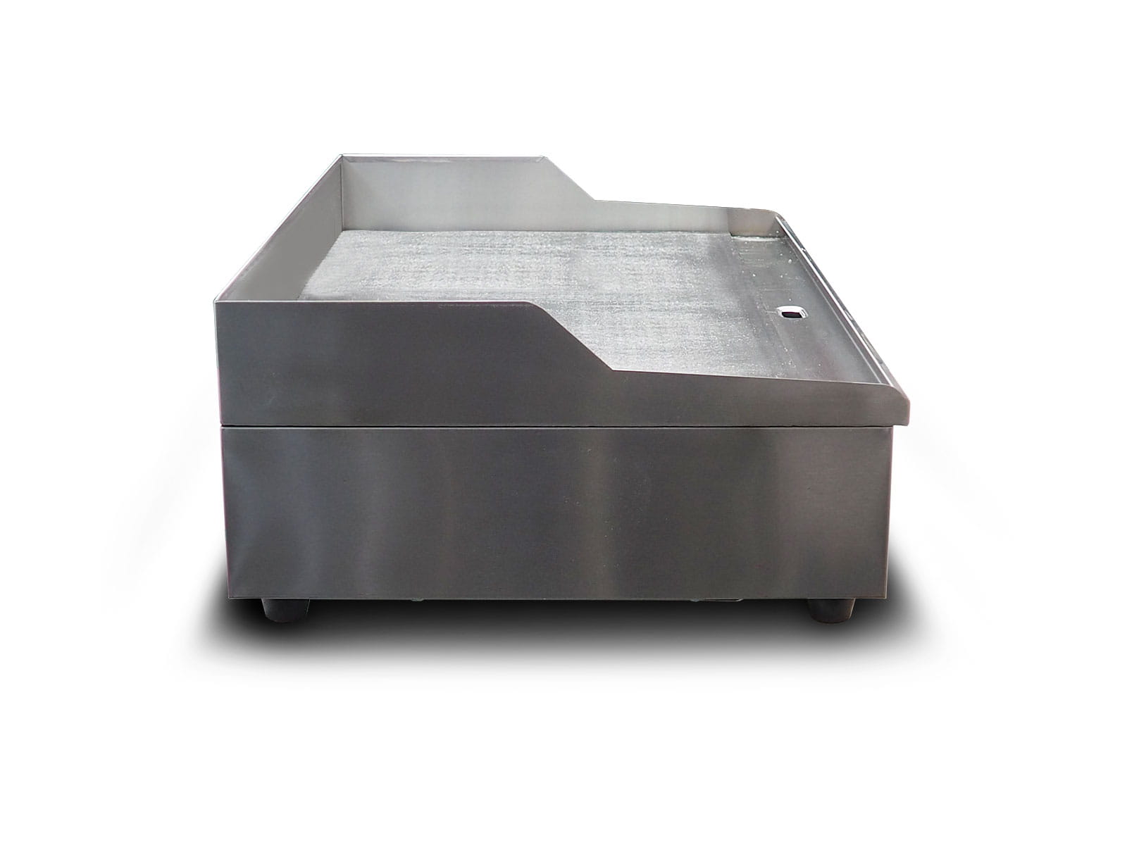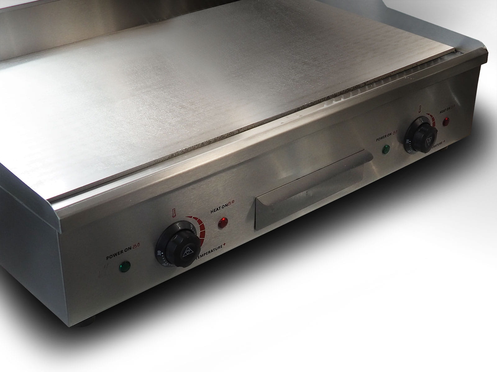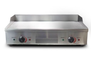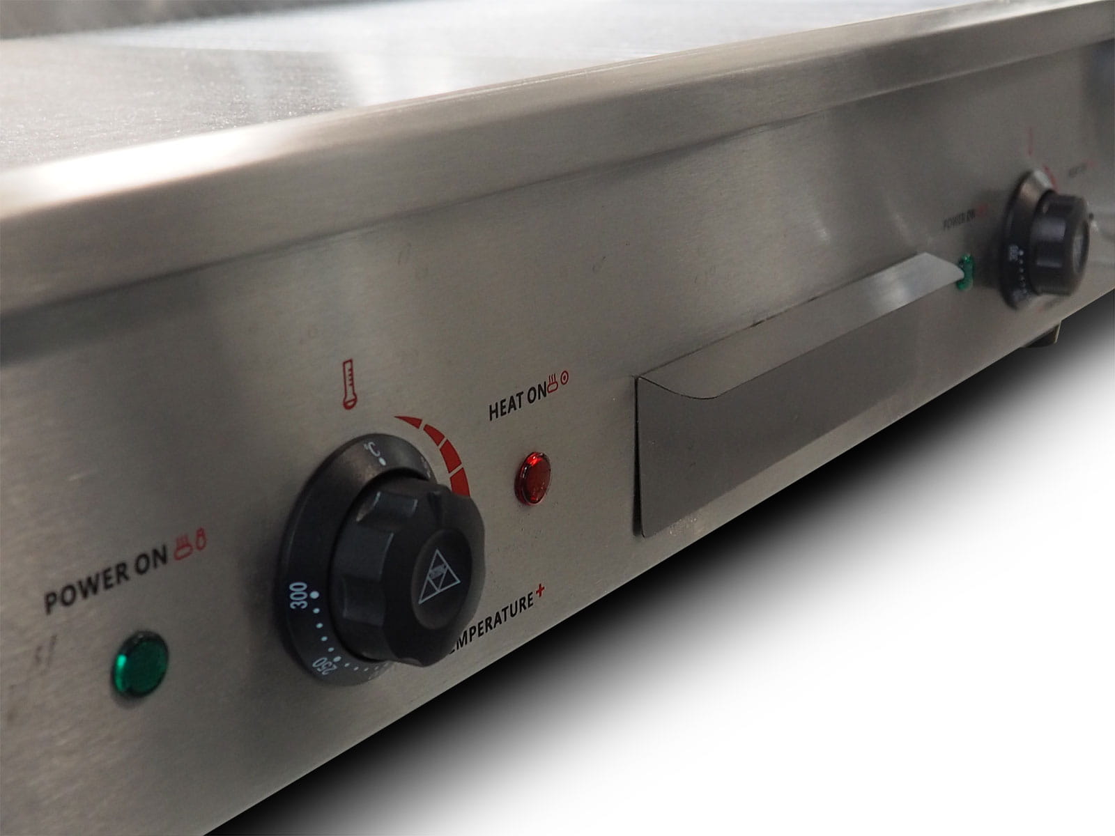 Płyta grillowa to wysokiej jakości urządzenie gastronomiczne, które swoje zastosowanie znajdzie w restauracjach, barach szybkiej obsługi czy mobilnych budkach samochodowych. Doskonale sprawdzi się podczas smażenia produktów mięsnych, rybnych, jajek, warzyw i innych potraw. Urządzenie zostało wykonane ze stali nierdzewnej, dzięki czemu cechuje się dużą odpornością na działanie wysokiej temperatury oraz wytrzymałością na uszkodzenia mechaniczne. Solidna konstrukcja wyznacza jakość produktu, który, przy odpowiedniej eksploatacji, sprawdzi się przez długie lata. Obszerna płyta grillowa o szerokości 73cm zapewnia dużo miejsca do smażenia różnych potraw. Dodatkowo jej brzegi zostały zabezpieczone wysokimi krawędziami. Chronią one otoczenie przed chlapiącym, gorącym olejem. Ciepło równomiernie rozkłada się na płycie, dzięki czemu potrawy będą podgrzewane jednakowo w każdym miejscu. Sprawny termostat umożliwia szybkie ustawienie pożądanej temperatury, a lampka kontrolna sygnalizuje moment gotowości urządzenia do pracy.