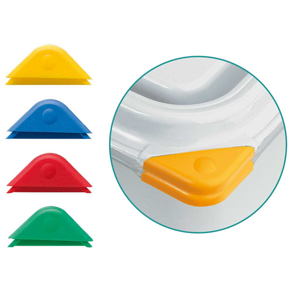 - wykonane z nieprzezroczystego polipropylenu z systemem ColorClip - zestaw kolorowych klipsów od oznaczania pokrywy i pojemnika (2x4 klipsy - zielony, niebieski, żółty, czerwony)