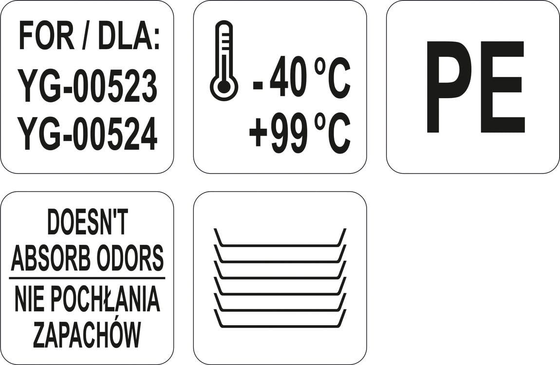 Wymiary 293x293mm pasują do pojemnika YG-00523 i YG-00524.