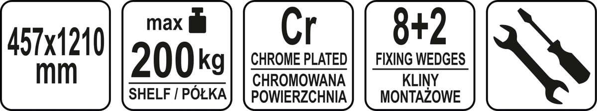 Pó,łka regału o wymiarze 457x1210mm ze stali chromowanej.