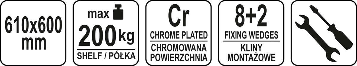 Pó,łka regału o wymiarze 610x600mm ze stali chromowanej.