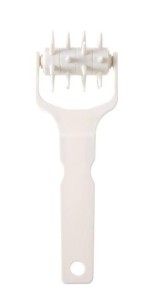 - Wałek o szerokości 60 mm z 32 długimi, wytrzymałymi plastikowymi kolcami do nakłuwania ciasta