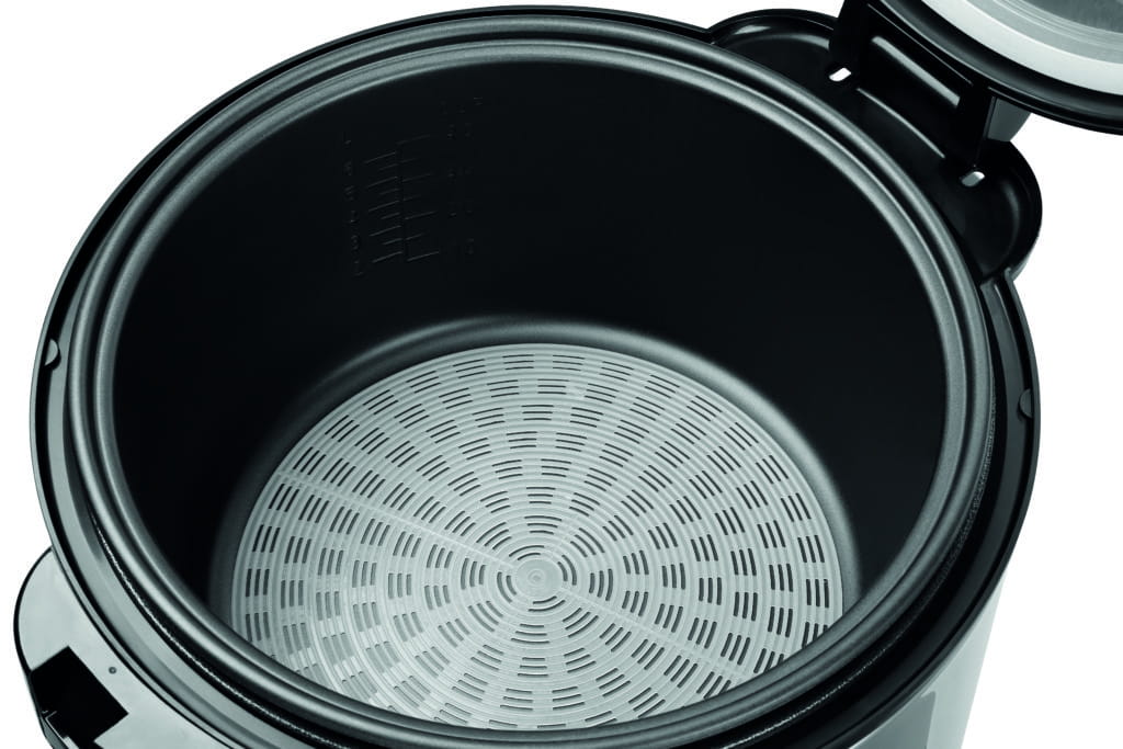 Gotowanie ryżu i utrzymywanie ciepła - bez przywierania i przypalania. Wyjmowany pojemnik wewnętrzny oraz pojemnik zbiorczy na wodę kondensacyjną gwarantują ponadto szybkie i łatwe czyszczenie.