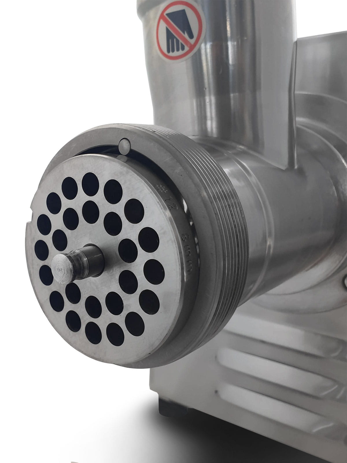 Urządzenie wyposażono w rewers celem ułatwienia pracy. Wilk do mięsa posiada w zestawie sitka 6, 8 i 10 mm, 2 noże. To świetne urządzenie o dużej skuteczności i wydajności - aż do 150 kg/24h! Wilk ze stali nierdzewnej 12 posiada wysoką prędkość pozwalającą na wydajną pracę urządzenia.
