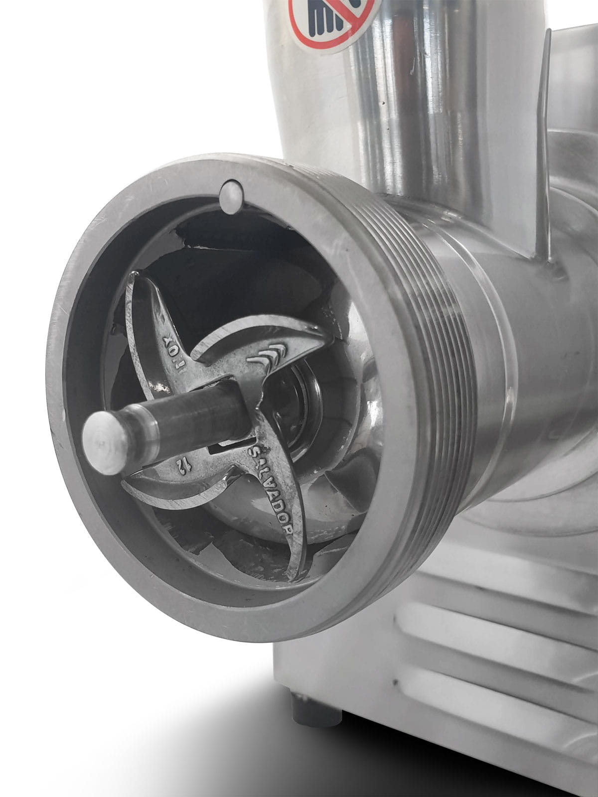 Prezentowany wilk do mięsa 12 to urządzenie w całości wykonane z wysokiej jakości stali nierdzewnej AISI 304. Solidna i zwarta konstrukcja zapewni długotrwałe użytkowanie i brak problemów wynikających z kwestii konstrukcyjnych. Wilk do mięsa ze stali nierdzewnej pozwala na skuteczne mielenie mięsa w każdym zakładzie gastronomicznym.