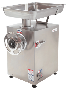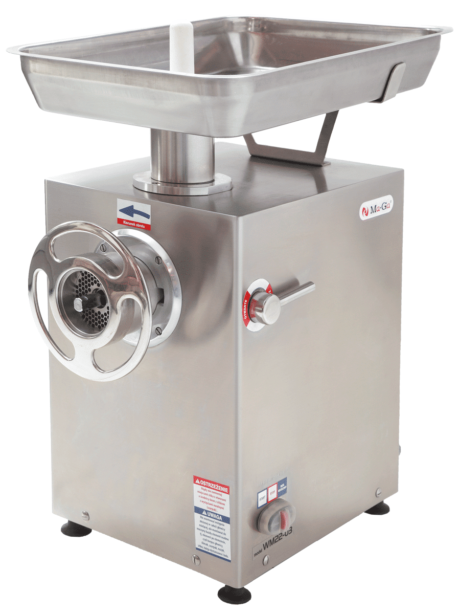 Wilk o mięsa z UNGEREM WM22-U3 jest profesjonalnym urządzeniem do rozdrabniania mięsa. Wilk do mięsa przeznaczony do użytku w dużych sklepach, supermarketach, cateringu, gastronomii oraz w zakładach zbiorowego żywienia i przetwórstwa mięsnego.Maszyna została przygotowana z bardzo dużą starannością w zakresie utrzymania czystości.Zwarta i szczelna obudowa oraz zdejmowalne elementy peryferyjne w postaci zespołu rozdrabniającego czy tacy załadowczej gwarantują bardzo dużą łatwość czyszczenia. Rozwiązanie techniczne napędu w postaci przekładni ślimakowej zapewnia dużą żywotność urządzenia, małe drgania oraz redukuje hałas.System rozdrabniający - Unger trzy elementowy, składający się z 2 sitek (płytka z wycięciami owalnymi - szarpak oraz płytka z otworami o średnicy 6 mm - sitko) oraz nożyka tnącego dwustronnego, wykonane są ze stali nierdzewnej.Nóż dwustronny. Przekładnia ślimakowa o przełożeniu i=7,5.Maszyna spełnia standardy CE w zakresie bezpieczeństwa i higieny.Dane techniczne:Moc: 1100 WWymiary: 450 (B) x 300 (E) x 360 (G) mmRozstaw Nóżek: 360 x 210mmWydajność do 250 kg/hObroty ślimaka 190 obr/minŚrednica sitka 81,5mmPoziom hałasu: ≤ 75 dBZasilanie: 400V 50Hz 3 fazy / 230V 50Hz 1 fazaCiężar: 36 kgOgraniczenia: Nie używać urządzenia do mielenia zmrożonego mięsa, mięsa z kością, a także do kruszenia samych kości. Konserwacja:Elementy maszyny stykające się z żywnością myć codziennie, po myciu osuszyć.Zabrania się mycia całej maszyny strumieniem wody.