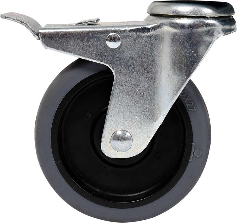 Wó,zek wyposażony jest w 4 kó,łka z łożyskami, wykonane z wysokiej jakości szarego TPR. Zastosowanie twardego, a jednocześnie elastycznego materiału zapewnia bardzo cichą pracę. Kó,łka nie rysują posadzki, nie pozostawiają na niej śladó,w i są skrętne w zakresie 360°,. Umożliwia to manewrowanie w trudno dostępnych pomieszczeniach i wąskich korytarzach. Dwa kó,łka wyposażono dodatkowo w hamulce.